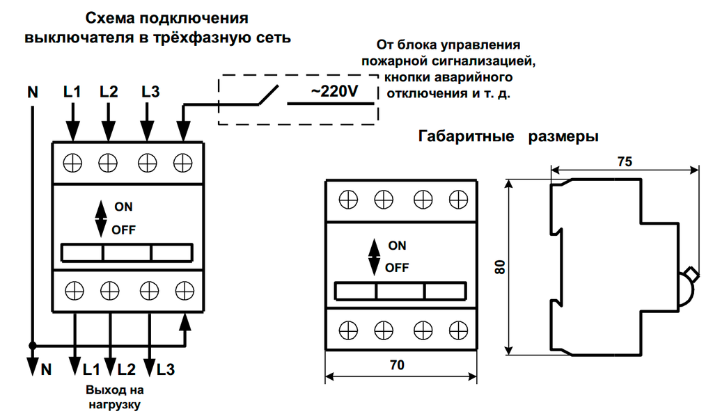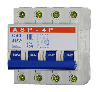 ASP-4P - Автоматический выключатель с независимым расцепителем предназначен для дистанционного отключения нагрузки от средств различной автоматики, от блока управления пожарной сигнализацией, от кнопок аварийного отключения и тд. Отключение происходит путём подачи переменного напряжения 220 вольтна выводы независимого расцепителя. Выпускаются в четырёхмодульном исполнении для трёхфазной сети.