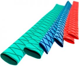 Фантазии на тему применения такой трубки могут быть безграничными. Это, в первую очередь, спортивный инвентарь, рукоятки удочек, бадминтонных и теннисных ракеток, детских спортивных лесенок, шведских стенок и турников. Это могут быть перила или различные декоративные ограждения, рукоятки рубильников, станков, различного промышленного оборудования. Наконец это могут быть приспособления для дома, например рукоятки молотков, топоров, черенки лопат, мётел и многое другое. Из других достоинств материала отметим так же то, что эта трубка обеспечивает высокую степень электроизоляции (до 1 Киловольта) и не трескается на морозе. Исполненная в различных расцветках, эта трубка может использоваться и в качестве декоративного материала при оформлении интерьеров, и в качестве маркировки. Так же доступна трубка Velvet с внутренним клеевым слоем, который позволяет не только надежно закрепить трубку на поверхности, но и герметизирует соединение, обеспечивая защиту от влаги.